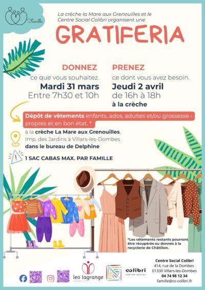 Jeudi 02 avril de 16h à 18h à la crêche impasse des jardins :